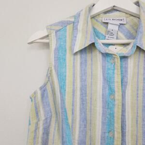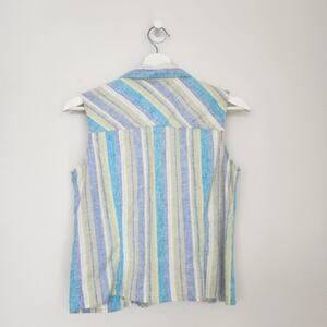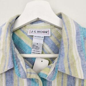 Vintage JG Hook Pastel Green Blue Purple Striped Linen Blend Button Down Top S