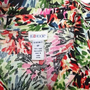 Vintage JG Hook Multicolor Floral Faux Wrap Collared Long Dress 6P 100% Linen