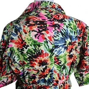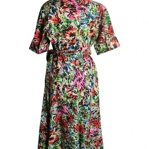 This 80's dress is in perfect condition. It has a vibrant floral print on this 100% Linen dress. It has a 50's inspired look.