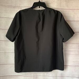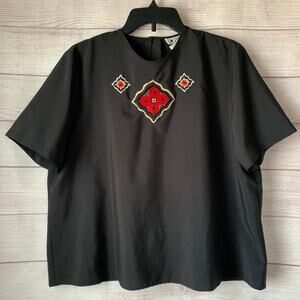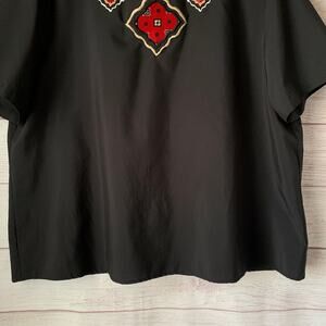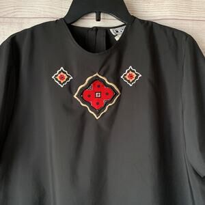 Vintage JG by Joyce Petite Black Blouse Short Sleeve Embroidered Diamond Size 14