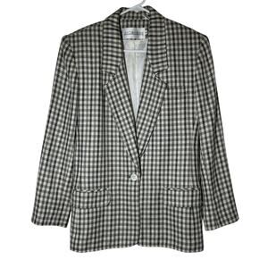 Vintage JH Collectibles Blazer Womens 6 Green Tan Checkered Business Suit Jacket