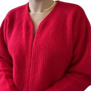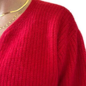 Vintage JH Collectibles Cherry Red Lambswool Angora Soft Plush Cardigan Sz L