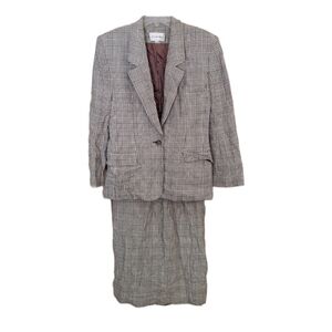 Vintage JH Collectibles Wool Blend Plaid Suit Sz 8 Gray Cream