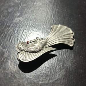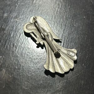 Vintage JJ Angel Brooch Silver Pewter Tone Red Rhinestone Crystal Candle Pin