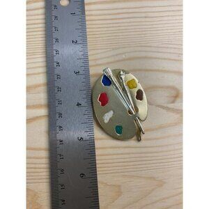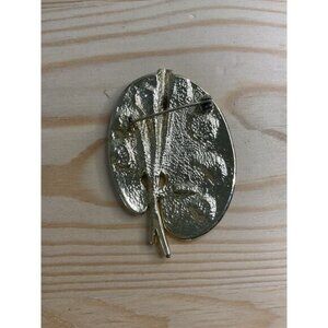 Vintage JJ Artist Palette Brooch Pin Gold Tone With Paintbrush & Paints