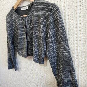 Vintage J.J. Basics Dark Gray Micro Mini Cropped Button Front Cardigan Medium