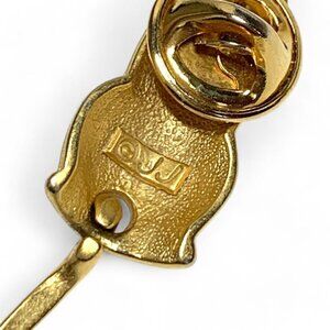 This vintage cat pin from JJ Jonette features a kitty seen from the back with an articulated tail that actually moves back and forth, adding a playful touch to any outfit. Its gold tone provides an elegant, minimalistic look.