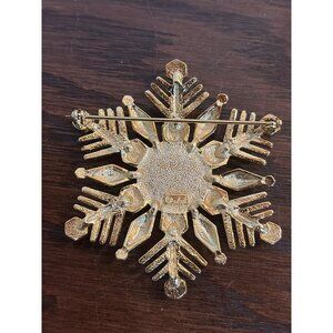 Vintage JJ Gold Snowflake Brooch Iridescent Crystal Center & Rhinestone Accents