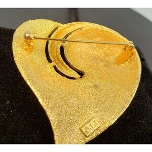 Vintage JJ Jonetta Heart Brooch Yellow Matte Gold Plated 2" Brooch