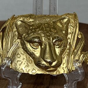 Vintage JJ Jonette 1986 Gold Tone Big Cat, Tiger, Panther Brooch Pin Statement