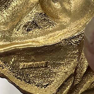 The Vintage JJ Jonette 1986 Gold Tone Big Cat Brooch Pin is a statement piece of jewelry that features a striking design of a tiger or panther. Signed by the brand JJ Jonette, this handmade metal brooch is a unique and eye-catching accessory that can be worn by both men and women. The gold color and retro 1980s era add a touch of elegance and sophistication to any outfit, making it suitable for various occasions including weddings, anniversaries, and birthdays. With its bold and artistic theme, this brooch is sure to make a statement and be a standout piece in any jewelry collection.