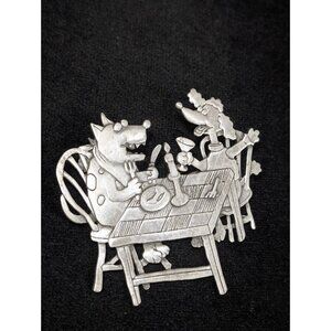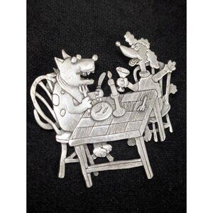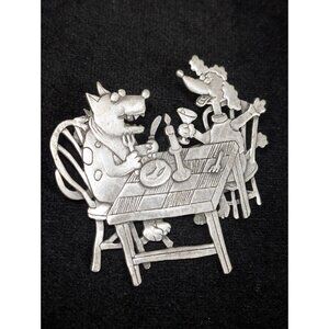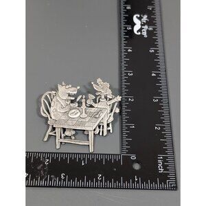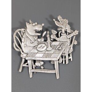 Vintage JJ Jonette Dog Dinner Date Pup Poodle Silver Tone Couple Candelight