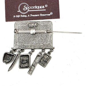 Vintage 1970s JJ Jonette Pin Art Spoontiques Math Chalkboard School Teacher Pewter Tone Charms Brooch Pin.