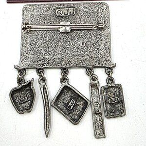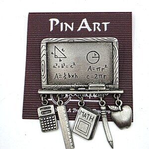 Vintage JJ Jonette Math Teachers Chalkboard Charms Brooch Pin Pewter Tone 1970s