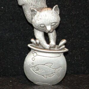 Vintage JJ Jonette Pewter Cat Kitten Jumping Into Fish Bowl Brooch Pin
