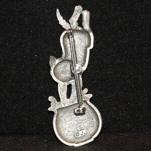 Charming vintage JJ (Jonette Jewelry Co.) pewter brooch featuring a playful cat reaching into a fishbowl. Highly collectible figural design, signed JJ on reverse.