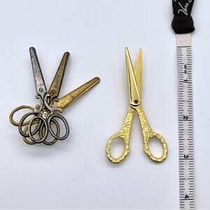 Vintage JJ Jonette Miniature Scissor Brooch Pin + Multi-Scissor Mixed Metal Cluster Brooch - Set of 2 - Sewing Themed