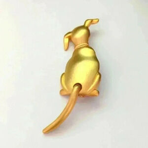 Vintage JJ" Jonette jewelry bronze pewter moveable wagging tail dog puppy pin