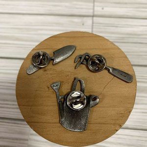 Vintage JJ Pewter Gardening Pin 3 Piece Set