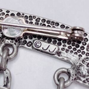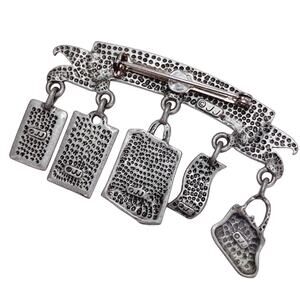 A nostalgic JJ brooch from the 1980s–1990s, its playful charms capture the humor and energy of shopping culture with dangling icons of bags, sales, and spending.