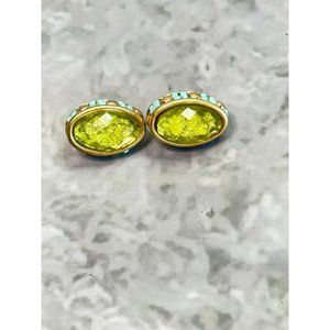 Vintage JJG Jonette Yellow Art Glass Blue Beaded Goldplate Clip On Earrings
