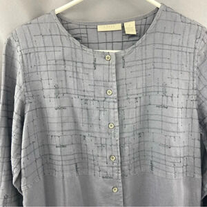 Vintage J.Jill 100% Linen Gray Long Sleeve Button Front Maxi Dress Size Small