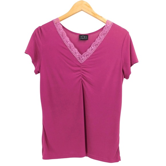 Vintage JKLA California Women's Top Lace V Neck Short Sleeve Purple Blouse