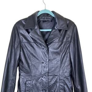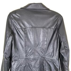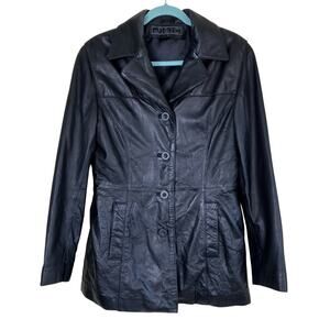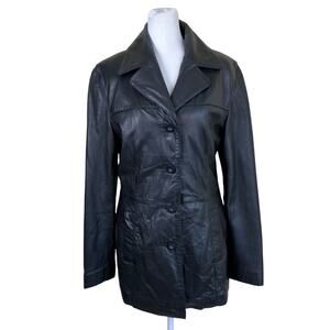 Vintage JLC Sz M Women’s Black Genuine Leather Button Up Jacket Driving Coat