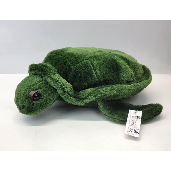 Vintage JLI Green Plush Sea Turtle 1994 The Petting Zoo Realistic Large Eyes 13"