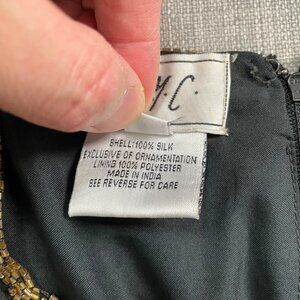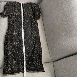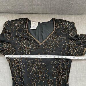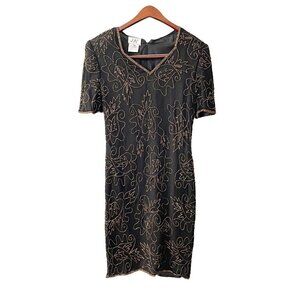 Vintage J.M.C. Black Silk Beaded Sequined V-Neck Cocktail Dress Women's Size PM
