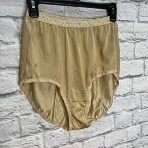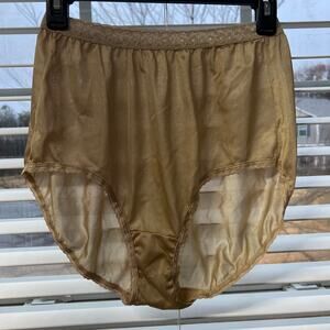 Vintage JMS Nylon Lace Trim Panties Beige Size 9 Silky Shiny Brief Sissy