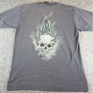 Vintage JNCO Jeans 90s Shirt Mens Large Gray Flamed Skull Fire Streetwear USA