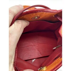 Vintage JO ANN PAGE Orange Leather Piping Shoulder Bag Purse *MADE IN USA