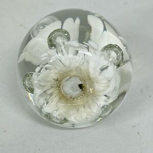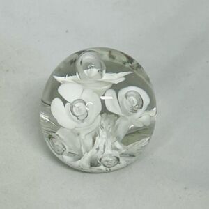 Vintage JOE ST CLAIR PAPERWEIGHT - WHITE TRUMPET FLOWERS & Bubbles 2.5"