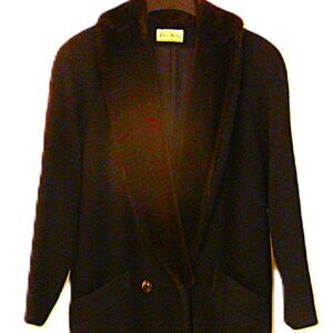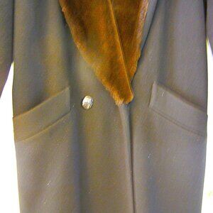 Vintage JOHN WEITZ Black Wool Brown Fur Collar Maxi Longline Sz Med/Large 12-14