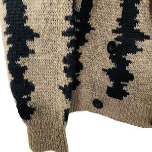 Vintage JON1E Cardigan Sweater Acrylic Knit Black Tan Patterned Size Large