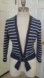 Classic and stylish navy and white striped sweater. Gold buckle at waist to secure ties, adjustable to your waist size. Perfect for casual wear. Pit to pit 18" Length 18" GUC