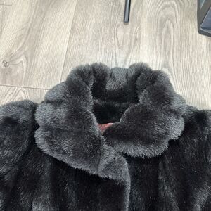 Vintage JORDACHE Faux Mink Fur Coat Jacket Black 9/10 (M-L) Mid Length Made USA