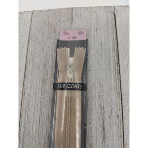 Vintage J&P Coats Flex Knit Zipper 9" Ecru 16 Off-White Tan