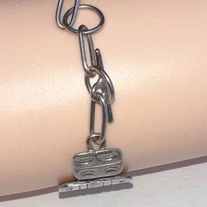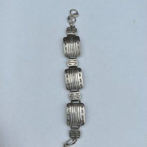 Vintage JP Sterling Silver Marquise Repousse Panel Link Bracelet 7" L, 30 Grams