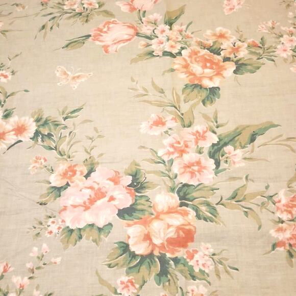 Vintage J.P. Stevens Full Flat Sheet 1970s Green Floral No Iron USA 78 x 100