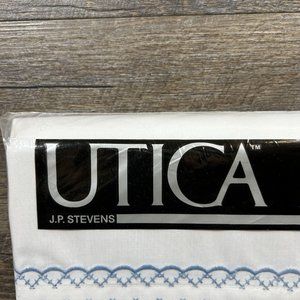 Vintage JP Stevens Utica Percale King Flat Sheet LITCHFIELD SAMPLER Cross Stitch No Iron Percale USA