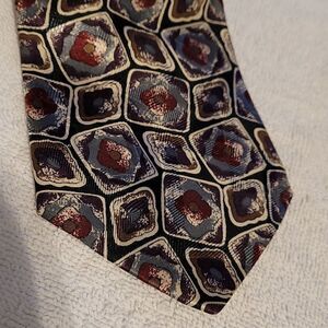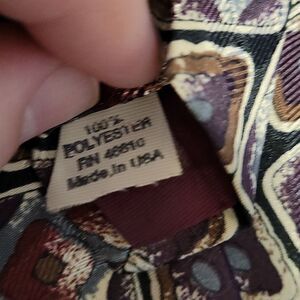 Super nice tie. Excellent condition and quality. Made with polyester materials. Made in the USA