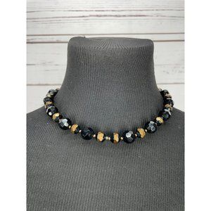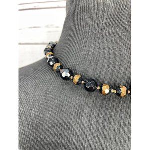 Vintage JS Signed Women's Black Iridescent Beaded Lobster Clasp Fashion Collar N