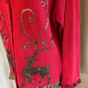 Vintage JTWO New York Red Christmas Reindeer Sequin Cardigan Sweater, Size XL