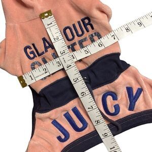 Size: M - CHECK MEASUREMENTS !! There is no standard sizing in dog clothing. My 7lb. Yorkie fits in a Juicy Couture size medium. Please check measurements to be sure the tracksuit will fit your pup. This is a vintage Juicy Doggy Couture, velour/velvet tracksuit. Item is in good condition but does have some fading due to age. This is a vintage 90s Juicy Couture item.