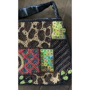 Vintage J&X NY Intricate Hand Beaded Strap & Bag Sequins Evening Boho Clutch