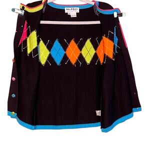 Vintage Jack B Quick Argyle Black Pink Green Blue Cardigan Sweater Medium