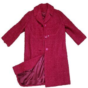 Vintage Jack Bloom Mohair Wool Boucle Coat Womens S Red Nubby Bracelet Sleeve