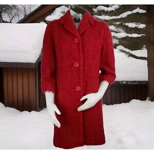1960's vintage red mohair wool boucle coat by Jack Bloom of California